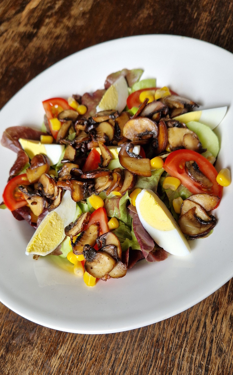 1. mit gebratenen champignons & ei (bild)